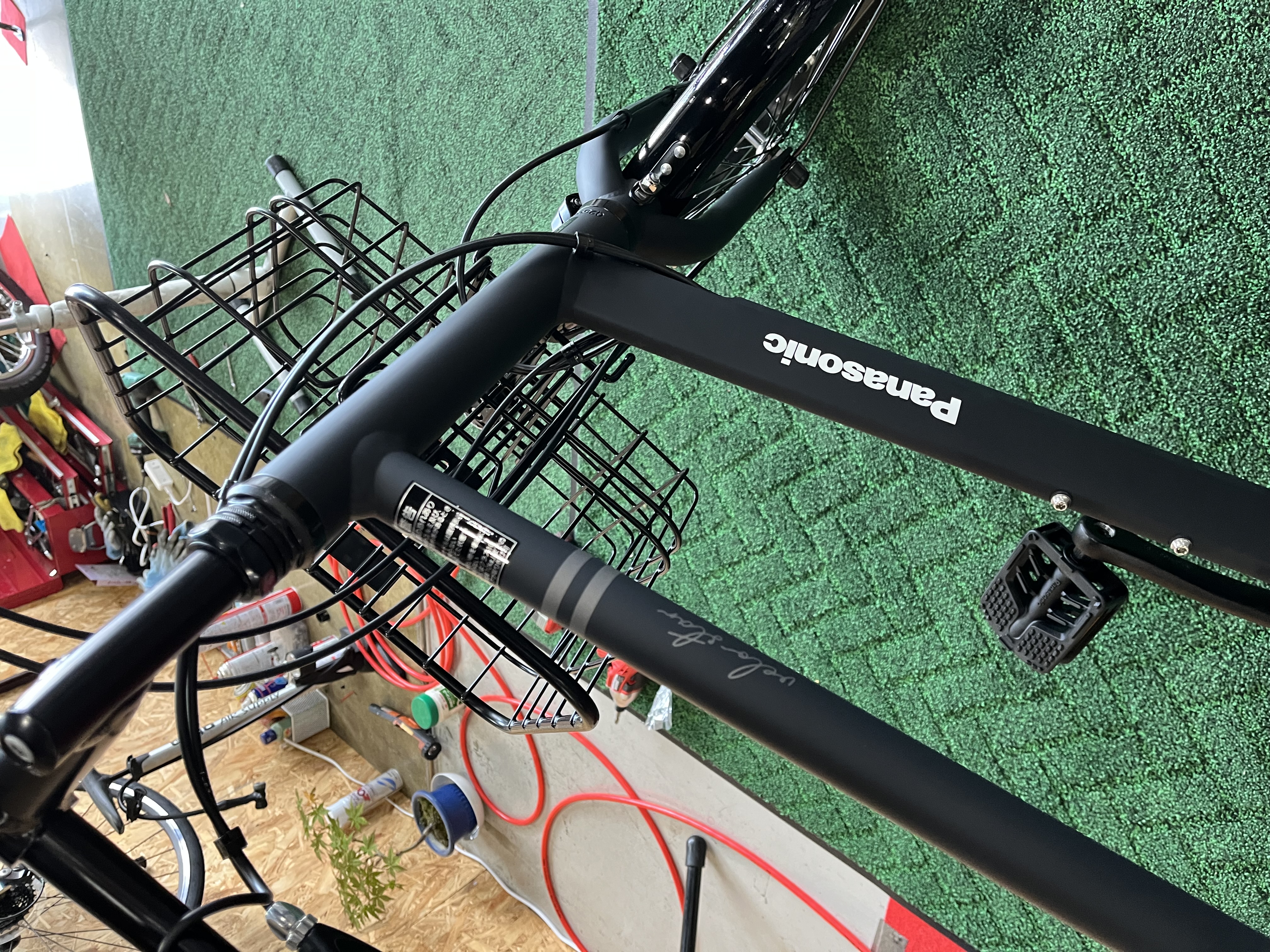 お待たせしていましたパナソニックの電動自転車、オプションのカゴ等つけて納車です♪
